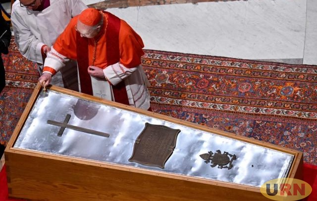A bag containing coins and medals minted during his pontificate was then placed in the coffin with the Pope. the Vatican News agency reported