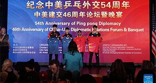 LOS ANGELES | Xinhua | Hundreds of Chinese and Americans, including lawmakers, diplomats and world champions, gathered at Los Angeles County’s Pacific Palms Resort to commemorate the 54th anniversary of China-U.S. “Ping-Pong Diplomacy.” Chinese Consul General in Los Angeles Guo Shaochun described “Ping-Pong Diplomacy” over five decades ago as “an …
