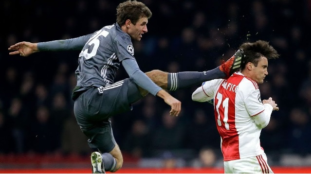 Like Mueller, Ajax midfielder Maximilian Woeber has also been given a two-match suspension for his horror tackle, in the same game, on Bayern’s Leon Goretzka which also led to the Austrian international being shown a straight red