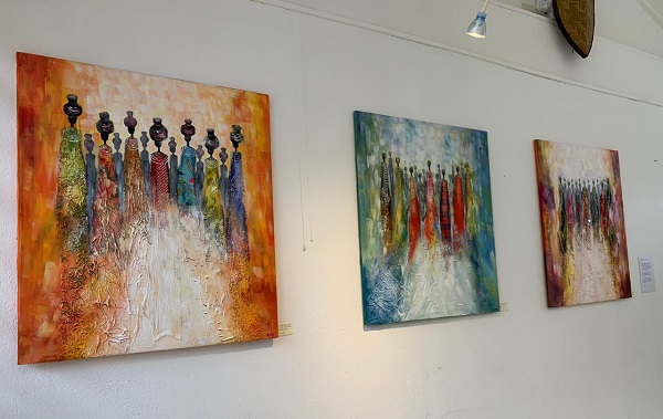 ART | DOMINIC MUWANGUZI | Whenever there’s a conversation on social- cultural heritage and conservation, it is very difficult to exclude artists in this dialogue. Artists through their productions interrogate and explore social- cultural aspects of everyday life and as such, contribute to the conservation of respective communities’ social-cultural heritage. An ongoing group exhibition featuring five contemporary Ugandan artists at Bumu Art Gallery echoes this experience. The artwork on display is an exploration of the day to day experiences of the artists inspired by what they encounter in their immediate communities. These routine engagements like child games, traders in the markets, women draped elegantly in African fabrics and embroidery and mobile motorcycles (boda-boda) laden with goods and passengers, captured on different surfaces are a reflection of the ever evolving social-cultural landscape in Uganda, especially Buganda which is the epicenter of many economic social activities.