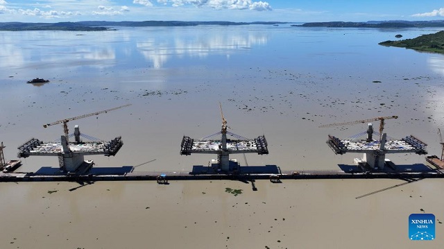 Arusha, Tanzania | XINHUA | Connecting the Mwanza and Geita regions, the Magufuli Bridge project over Lake Victoria in Tanzania is built by China Civil Engineering Construction Corporation (CCECC). The main bridge has a total length of 520 meters and the project is expected to be completed by the end of 2024.