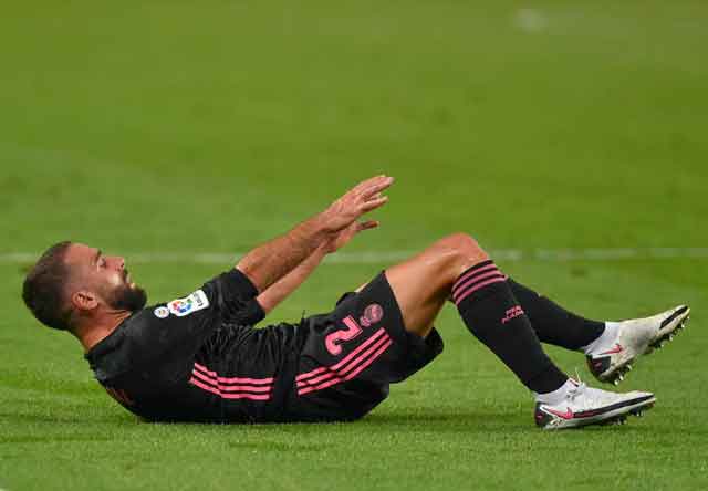 Early indications are that Carvajal could be out of action for up to two months, which means as well as the forthcoming internationals, he will also have to sit out this weekend’s La Liga trip to play Levante, and league matches against Cadiz, Huesca, Valencia and Villarreal.
