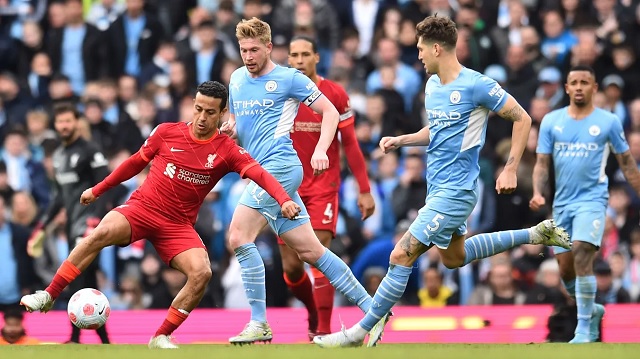 City started on the front foot and Raheem Sterling was denied superbly by Alisson early on before the Etihad erupted when Kevin De Bruyne opened the scoring with a shot that deflected off Joel Matip in the fifth minute.