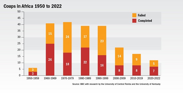 But coups are complex and disruptive events, according to an analysis in the Africa Defense Forum, a publication that exclusively reports on the African militaries. In an article titled “Why Are Military Coups Returning to Africa?” said, however, that understanding what causes coups is the first step in building professional militaries that have the knowledge, training and desire to avoid them.