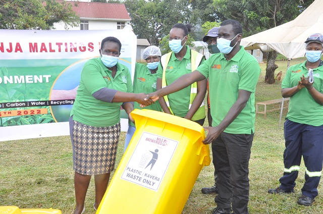 Jinja, Uganda | THE INDEPENDENT | Nile Breweries limited (NBL), through its Jinja Maltings plant, has donated waste disposal and segregation plastic bins to Jinja Referral Hospital in commemoration of the world environment day.