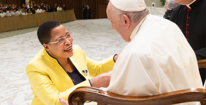 Among said she was in Rome on the on the invitation of the Holy See. After the meeting, she posted this prayer on twitter: “Be anxious for nothing, but in everything by prayer and supplication, with thanksgiving, let your requests be made known to God – Philippians 4:6”