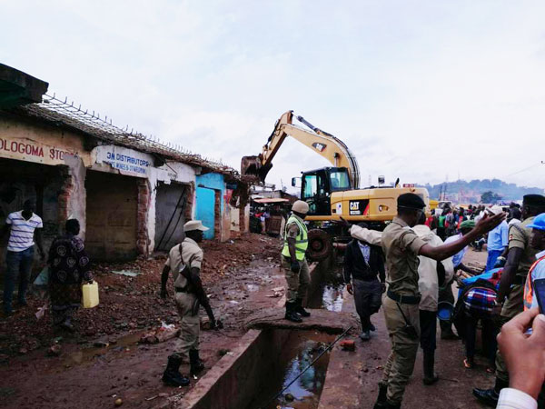 Kampala, Uganda | THE INDEPENDENT | Uganda National Roads Authority enforcement teams are carrying out demolition of structures at Kalerwe, Bivamuntuuyo market to pave way for expansion works on the Kampala Northern Bypass project.