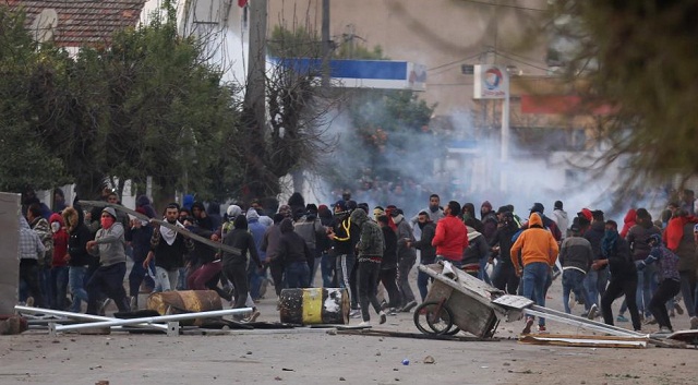 Kasserine, Tunisia | AFP | Clashes between Tunisian protesters and security forces spread from an impoverished western city overnight, authorities said Wednesday, as anger grew over the death of a journalist who set himself on fire over economic conditions.