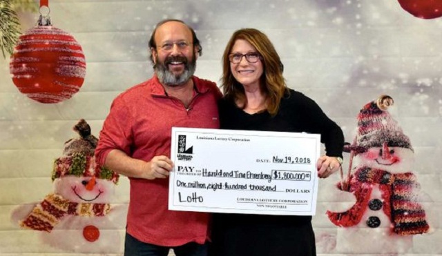 Harold and Tina Ehrenberg found the $1.8 million winning ticket, which won the southern US state’s June 6 Lottery Lotto draw, while doing some holiday cleaning.