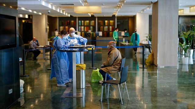 As soon as patients enter, the nurses take their temperature, revise their medical reports and ask if they need to contact any family member while hotel employees assign them to a room.
